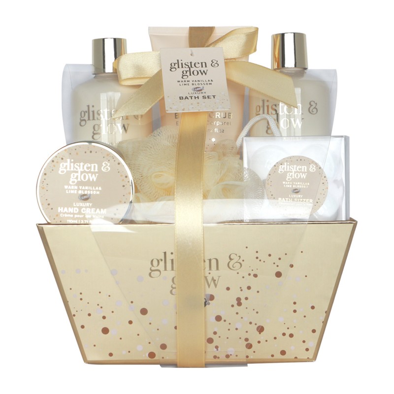 Affirmez votre côté raffiné et chic grâce à la collection Glisten & Glow. Découvrez notre coffret beauté de la collectionGlisten & Glow BY GLOSS! à la senteur Vanille et Tilleul. Ce coffret est un cadeau ideal à offrir pour toutes occasions. Son destinataire sera émerveillé par son contenu, son design de createur, son originalité et son élégance. La pureté de la Vanille et du Tilleul apporte une puissance au plaisir du bain et du SPA. Plus que des produits, offrez des moments de relaxation, d'insouciance et de bien être. Le coffret est totalement réutilisable pour ranger des accessoires de beauté dans la salle de bain. Un cadeau 2 en 1 c'est un cadeau merveilleux qui fait doublement plaisir. Parfait pour un cadeau d'Anniversaire pour vos proches, Saint Valentin, Fête des Mères, Cadeaux Noël, Cadeaux plaisir.