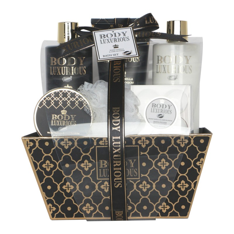 Offrez-vous un coffret élégant et raffiné de la collection Body Luxurious Black aux senteurs envoutantes. Découvrez notre coffret beauté de la collection Body Luxurious BY GLOSS! à la senteur Vanille et Tilleul. Ce coffret est un cadeau ideal à offrir pour toutes occasions. Son destinataire sera émerveillé par son contenu, son design de createur, son originalité et son élégance. La pureté de la Vanille et du Tilleul apporte une puissance au plaisir du bain et du SPA. Plus que des produits, offrez des moments de relaxation, d'insouciance et de bien être. Le coffret est totalement réutilisable pour ranger des accessoires de beauté dans la salle de bain. Un cadeau 2 en 1 c'est un cadeau merveilleux qui fait doublement plaisir. Parfait pour un cadeau d'Anniversaire pour vos proches, Saint Valentin, Fête des Mères, Cadeaux Noël, Cadeaux plaisir.