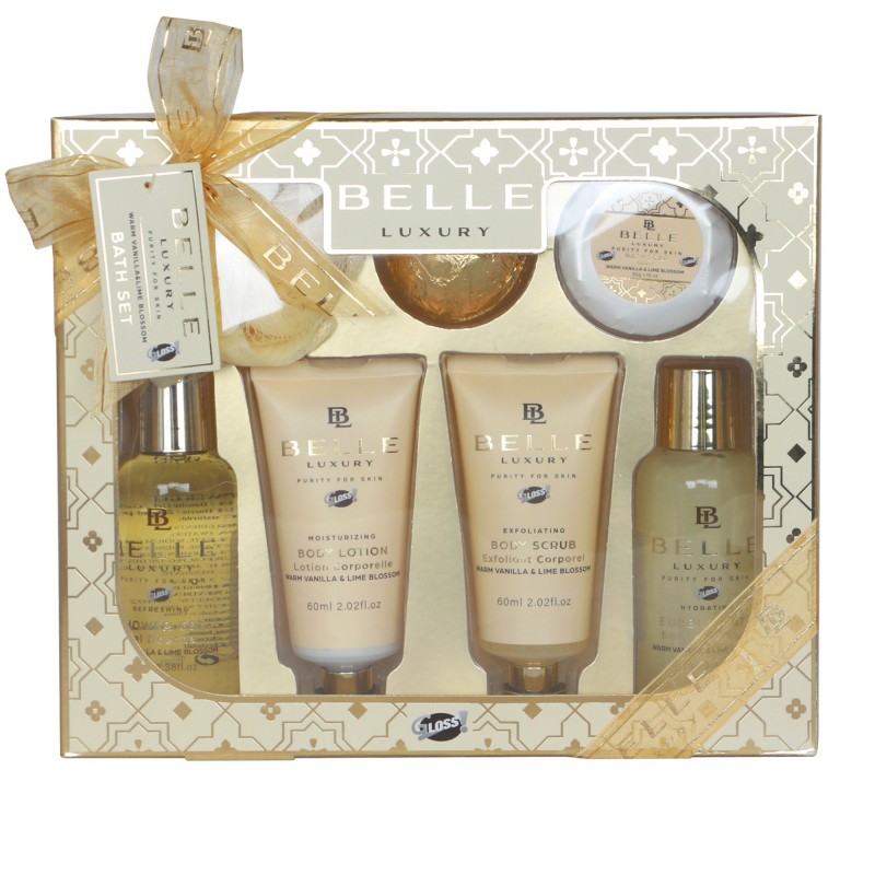 La collection Belle Luxury s'inspire de la pureté et de la fraîcheur de la vanille et du tilleul. Découvrez notre coffret beauté de la collection Belle Luxury BY GLOSS! à la senteur Vanille et Tilleul. Ce coffret est un cadeau ideal à offrir pour toutes occasions. Son destinataire sera émerveillé par son contenu, son design de createur, son originalité et son élégance. La pureté de la Vanille et du Tilleul apporte une puissance au plaisir du bain et du SPA. Plus que des produits, offrez des moments de relaxation, d'insouciance et de bien être. Le coffret est totalement réutilisable pour ranger des accessoires de beauté dans la salle de bain. Un cadeau 2 en 1 c'est un cadeau merveilleux qui fait doublement plaisir. Parfait pour un cadeau d'Anniversaire pour vos proches, Saint Valentin, Fête des Mères, Cadeaux Noël, Cadeaux plaisir.